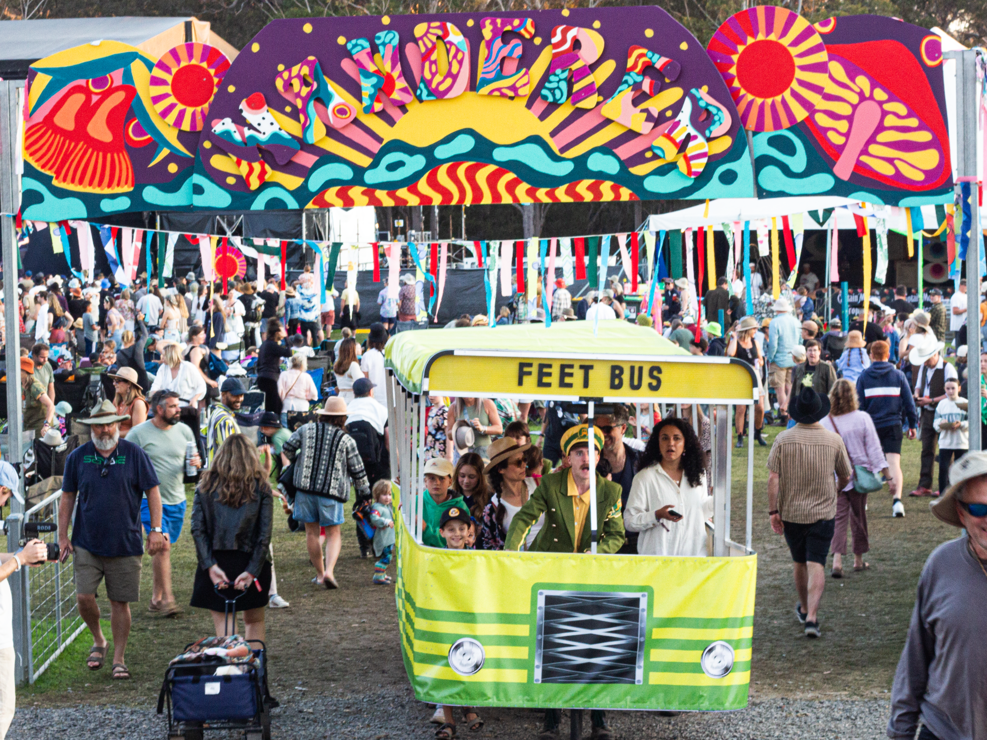 Description: Based on an earlier project form 2002-2007, the all new Feetbus is a revolutionary way to travel. Gathering up to 20 people at a time from a festival crowd, the Feetbus creates a fun participatory experience for a group of strangers and a lot of entertainment for everyone around them.